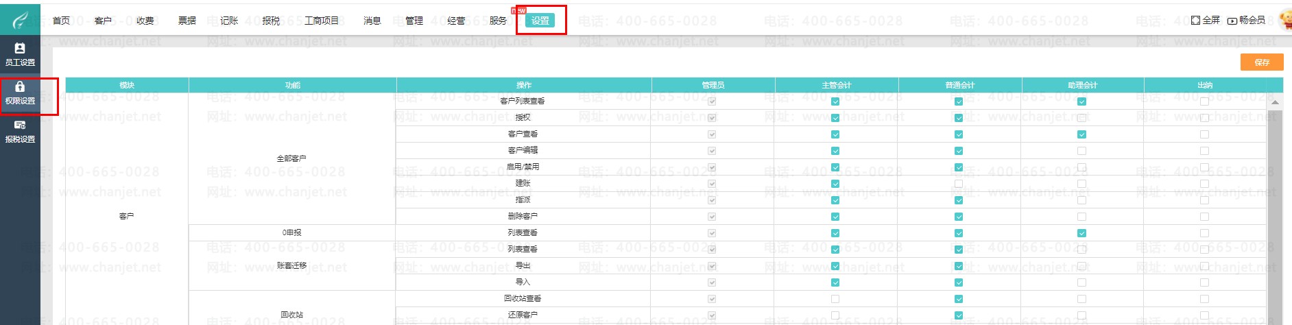 易代账软件中角色有管理员、主管会计、普通会计、助理会计、出纳;管理员权限是默认的,其他角色的权限在权限管理界面进行勾选设置。