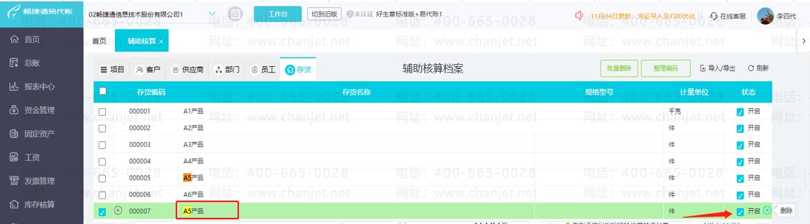 3.删除重复的辅助核算存货信息即可