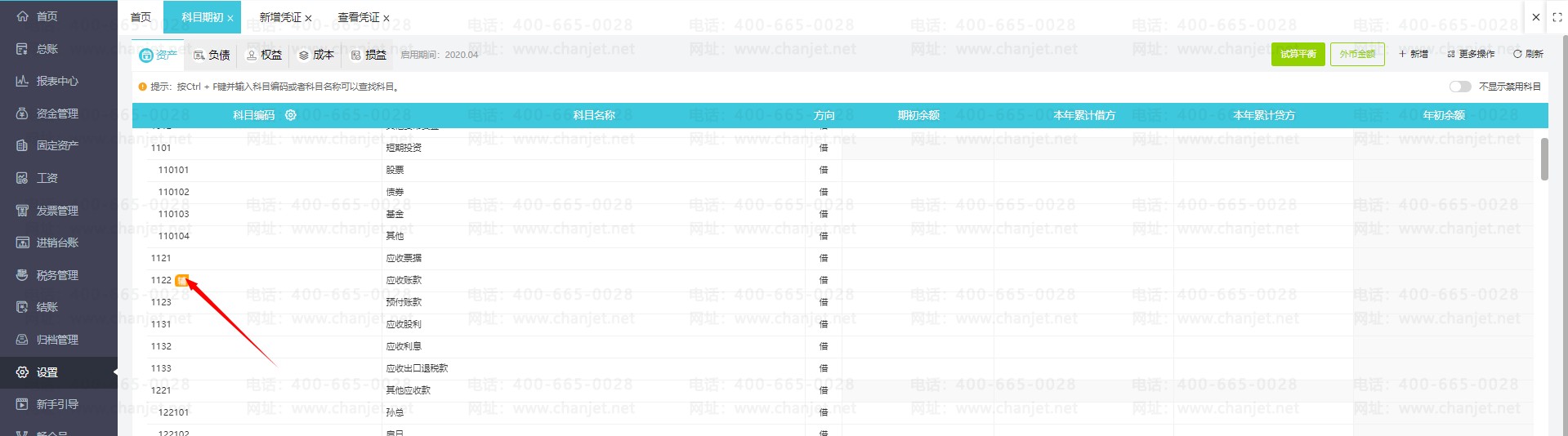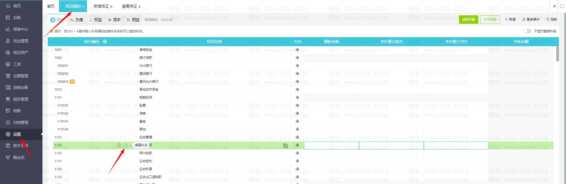 1.辅助核算设置,依次点击【设置】-【科目期初】,再点击科目旁边的【编辑】按钮,在【辅助核算】处勾选到对应要设置的辅助核算项目,例如添加客户辅助核算,如图: