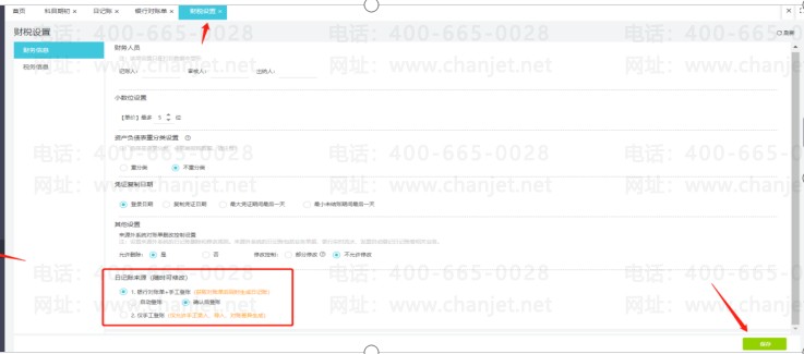 路径:【基础设置/设置】-【财税设置】设置日记账来源选项