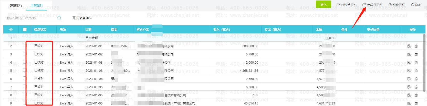 方式二:点击【资金管理】-【日记账】-【导入日记账】,下载对账单模板
