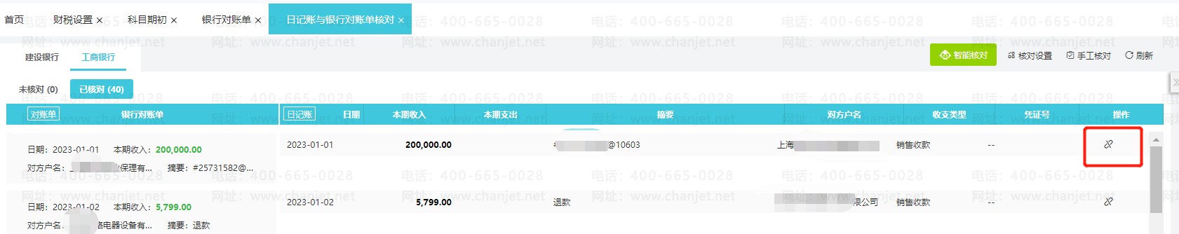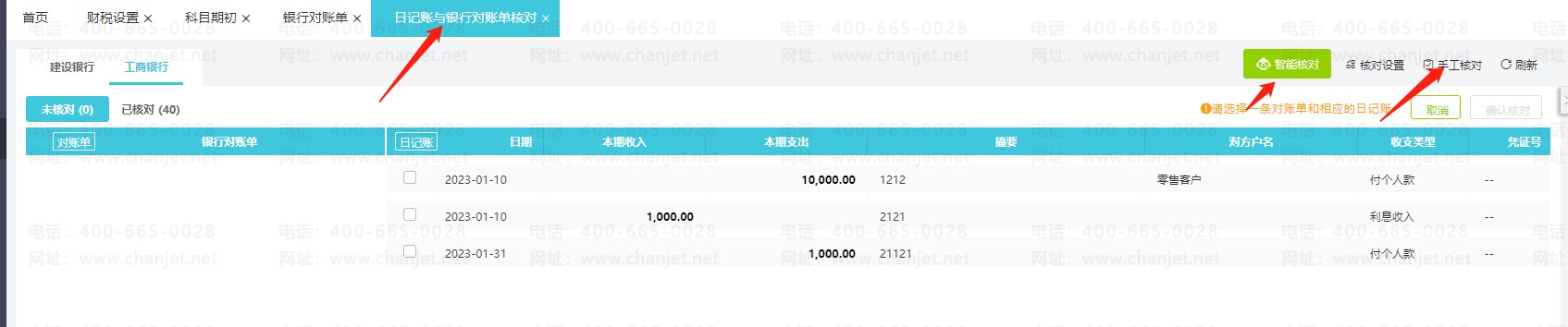 ①智能核对和手工核对