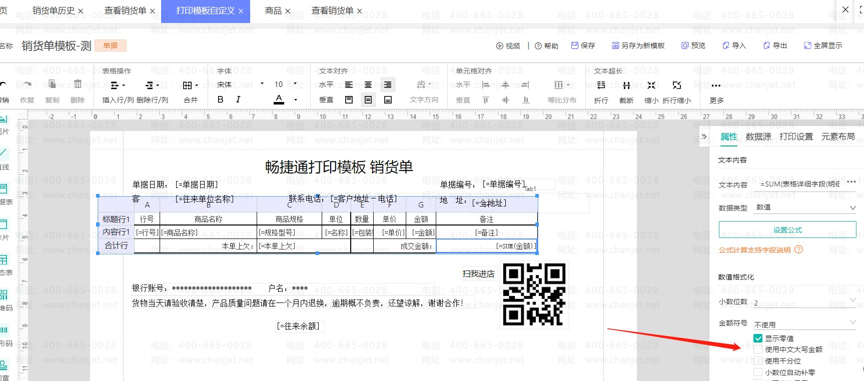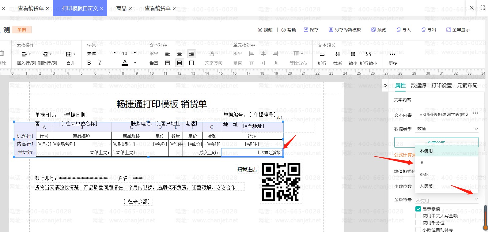 如果需要小写金额增加符号,可以在这个界面选择【金额符号】: