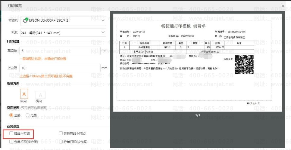 1. 在【销货单】预览界面,可以勾选【赠品不打印】: