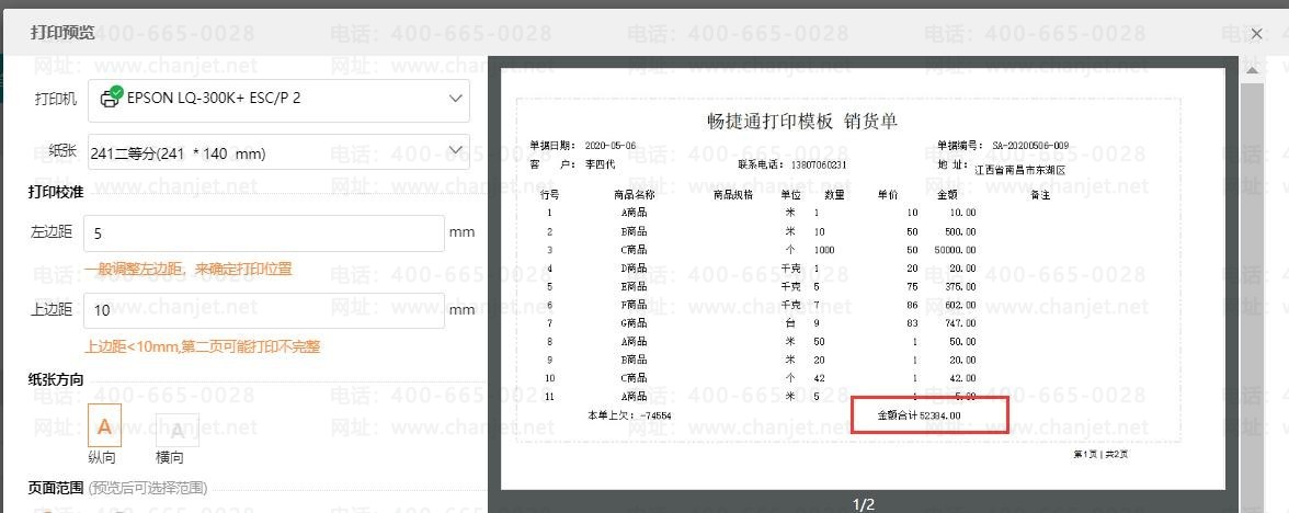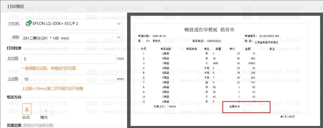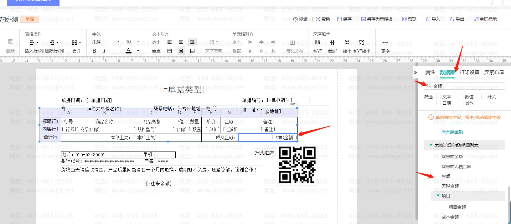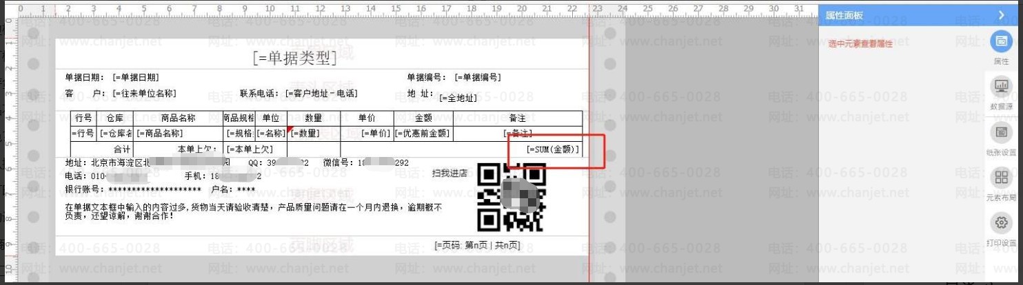 【操作步骤】 :打印模板中设置的合计字段要求在【数据表区域】取数显示,否则单独设置合计公式无用。