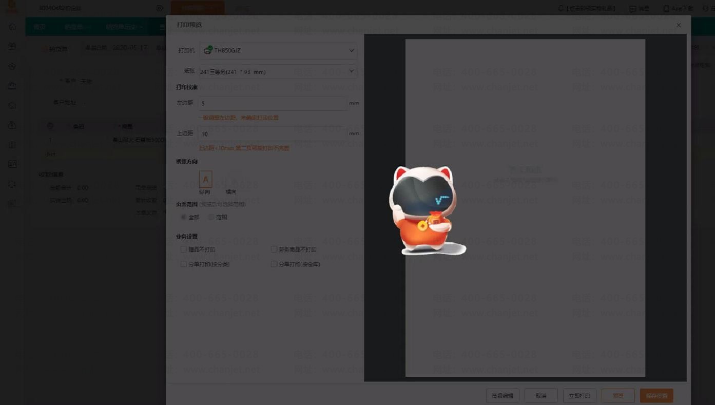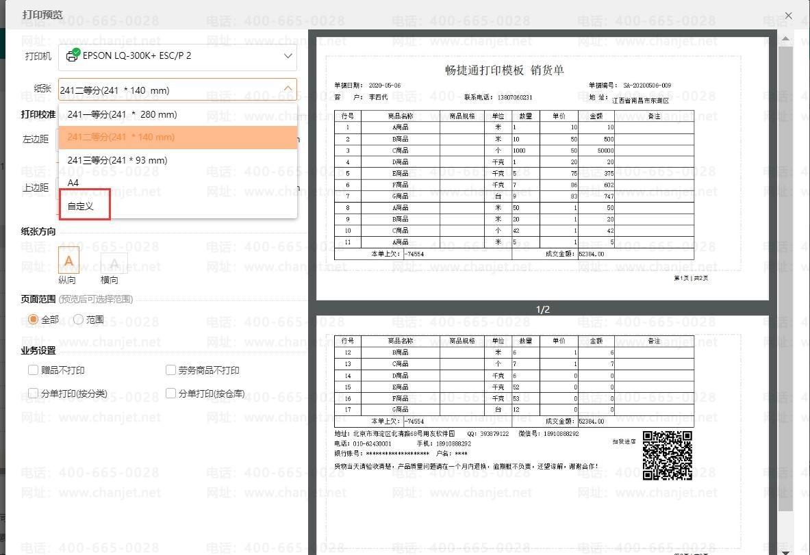 【操作步骤】 :可能是因为选择的纸张大小以及对应设置的页边距不合适导致的,例如客户设置的纸张大小是 241*93,上页边距之前设的 10,那么这样就会整个单据操作纸张范围,导致不能预览,可以将页边距调小或者自定义纸张高度调高。