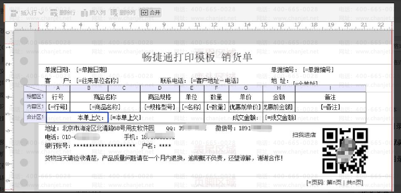 【操作步骤】 :按规范调整打印模板,打印模板表体区的数据表,必须要有标题行和内容行和合计行;