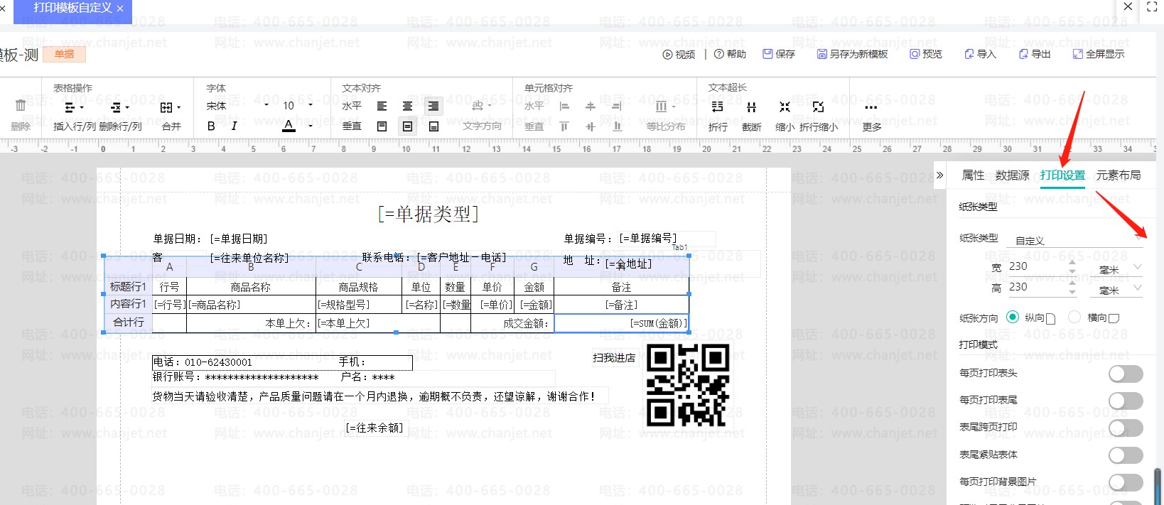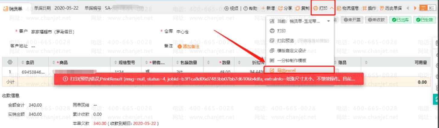 【操作步骤】 :该问题一般是由于纸张大小设置问题导致,可以在【系统管理】-【打印模板设置】中,例如高度、宽度不要设置为 0: