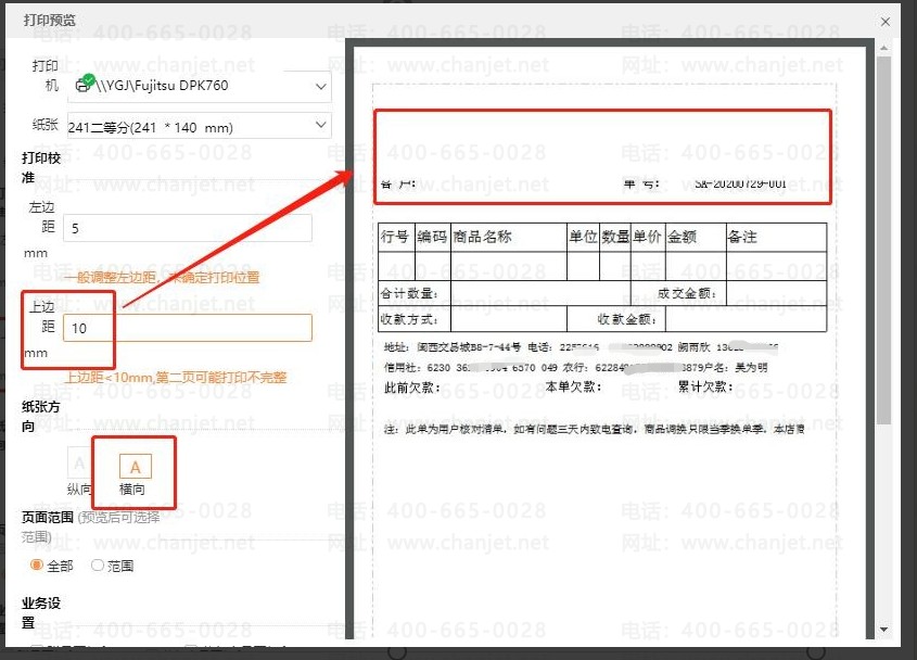 【操作步骤】 :横向打印不显示表头,需要将上边距设置的大一些: