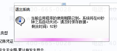 在操作U8客户端使用的时候提示:当前应用程序的使用期限已到,系统将在60秒钟之后自动关闭,请及时保存数据。