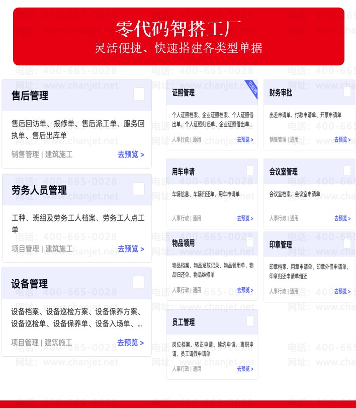 (比如企业有OA表单管理需求,可自己按需搭建会议室预定表、办公用品领用表等)