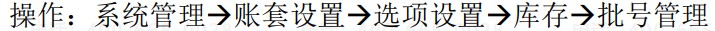 对于同一种存货,可能因为外包装、内在质量、有效日期等不同而需要进行划分管理,这是对存货进行更细致管理的一种方式,用户通过存货的批号,可以对存货的收发存情况进行批次管理,可统计某一存货所有批次或某一批次的收发存情况。例如药品、