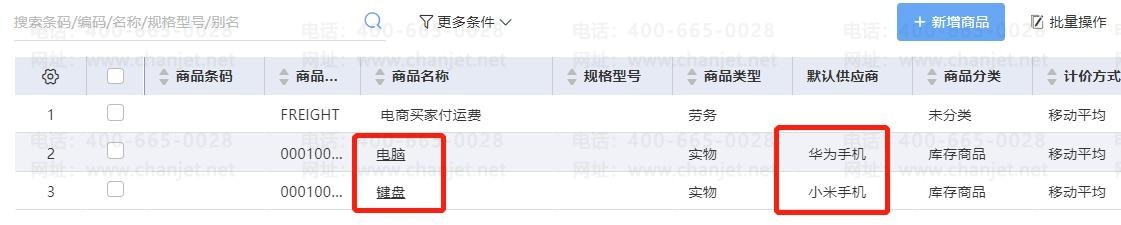 3、进入【基础信息】-【商品档案】,可以看到只能看到授权的主要供货商【测试用】下面的商品,其他商品档案均看不到,也只能选到此商品做单据。