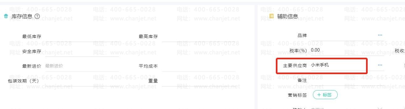2、进入【基础信息】-【商品】商品档案右下角【辅助信息】-【主要供应商】维护好主要供货商。