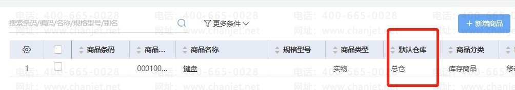 3、进入【基础信息】-【商品】商品档案,就只能查看到该默认仓库下面的商品, 同时也只能选到该默认仓库下面的商品做单。