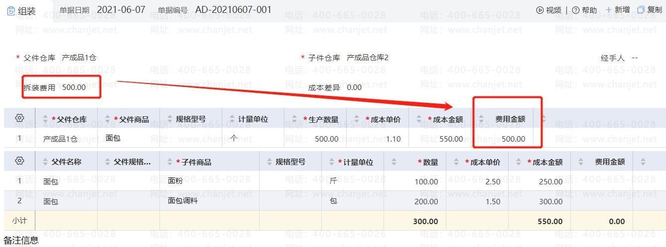 备注:父件成本和子件成本都可以修改,但是父件成本即使修改,其他出库单上依然根据商品的结存成本带出;其他入库单根据子件修改后的成本带入。