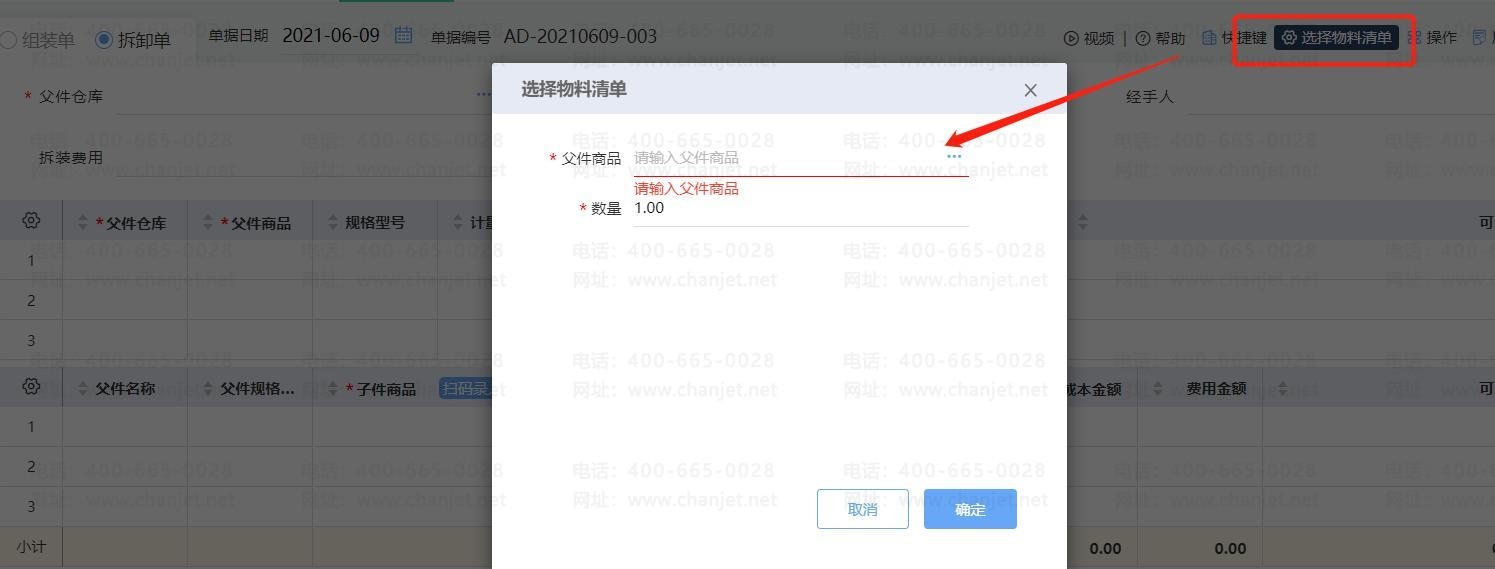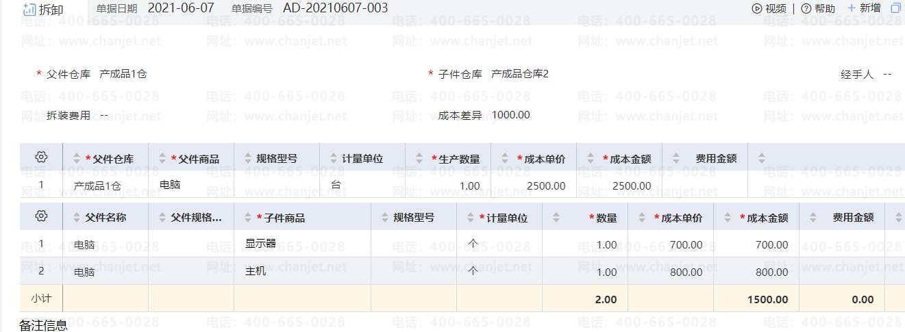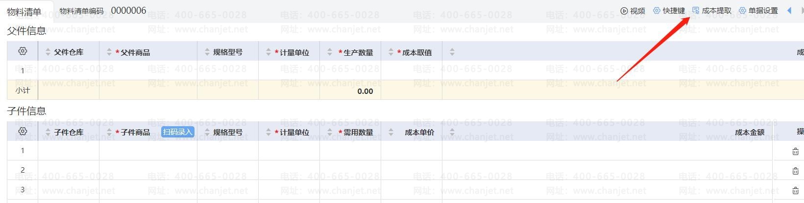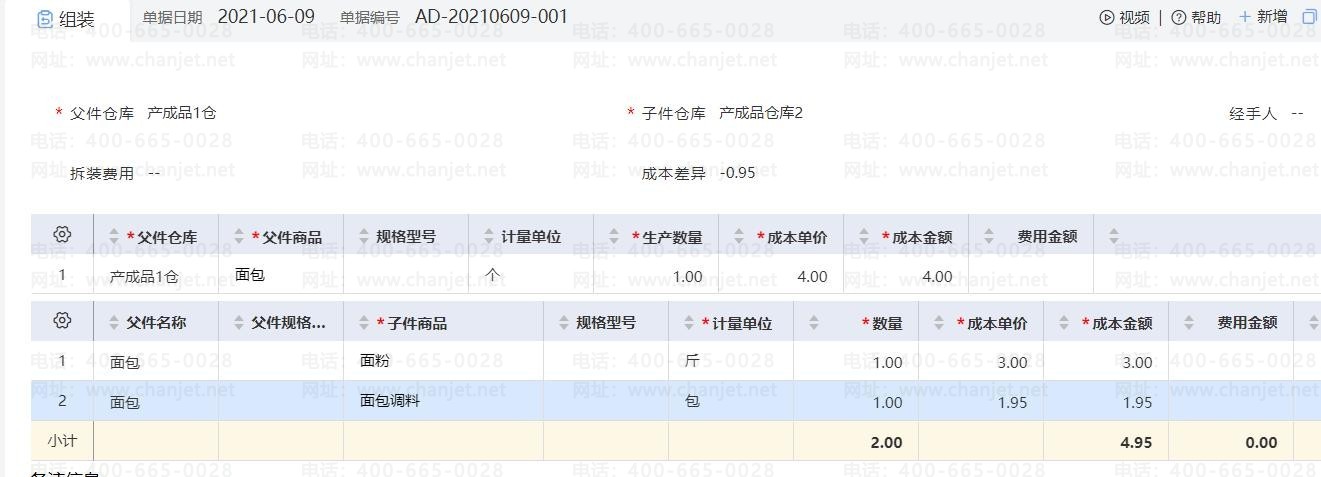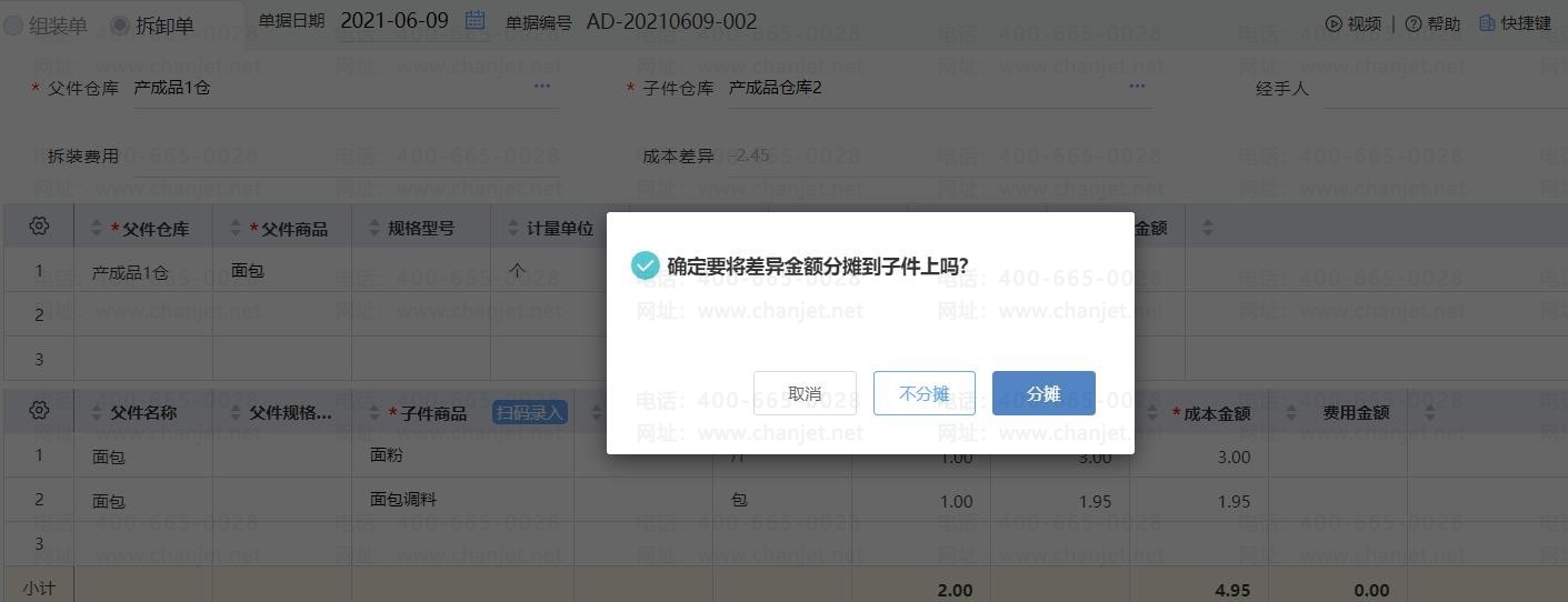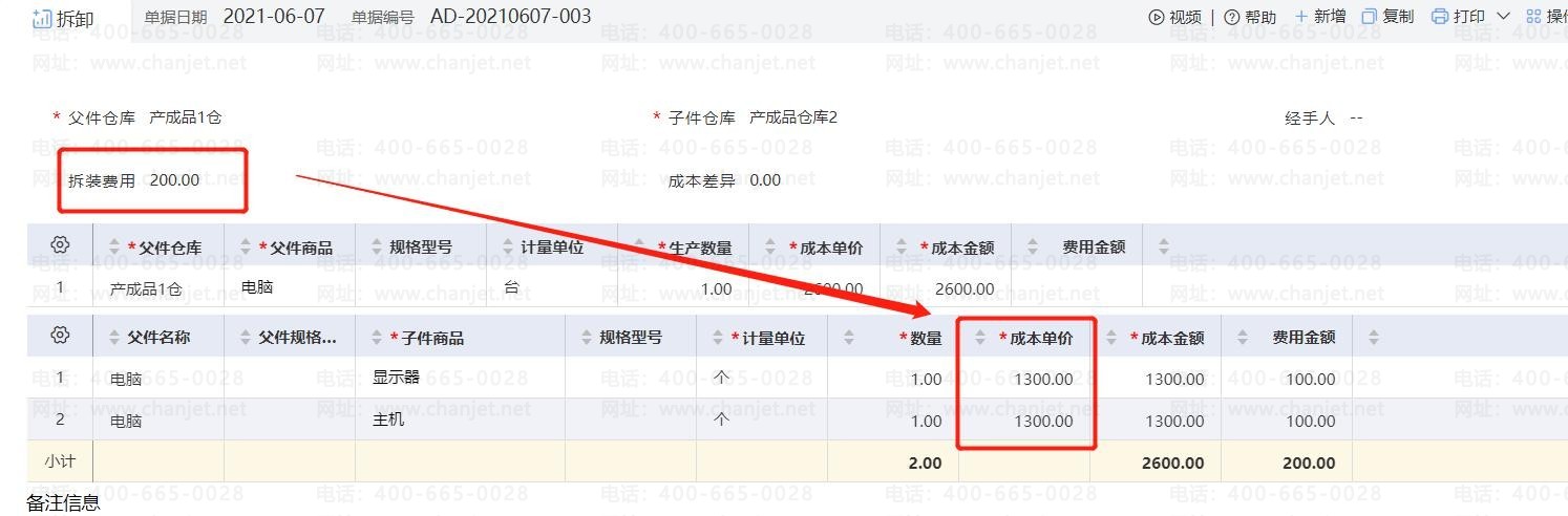 父件成本单价 子件商品成本单价+拆装费用