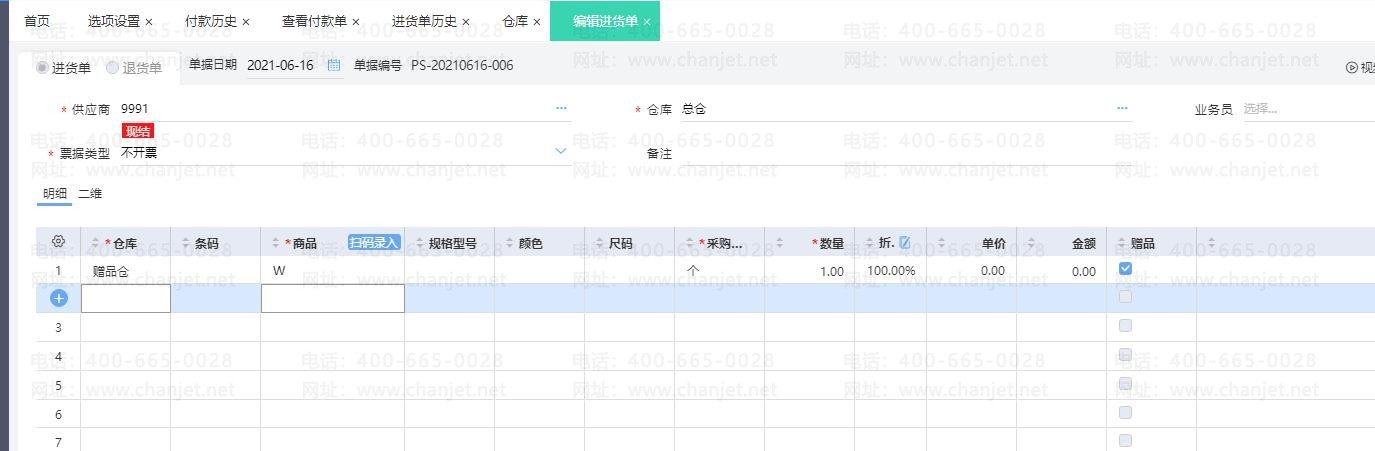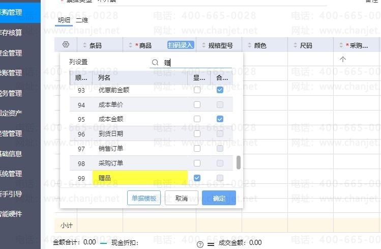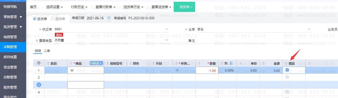 1、点击【采购管理】-【进货单】,在表体左上角【小齿轮】勾选出【赠品字段】, 正常输入商品,将为赠品的商品一行,勾选上【赠品】字段。