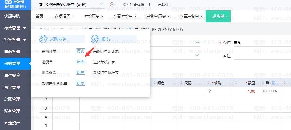 3、点击【采购管理】-【进货单】-勾选出表体的【仓库】;然后在建立【进货单】的时候,赠品选择入库赠品仓,和其他商品分开入仓。