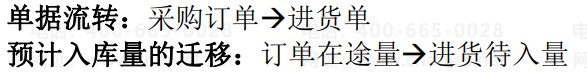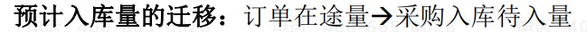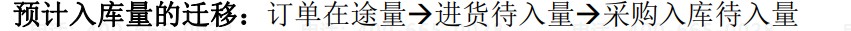 说明:当采购订单生效后,订单在途量增加;依据本订单完成进货单后,订单在途 量减少,同时进货待入量增加;在这种流程下不存在采购入库待入量。