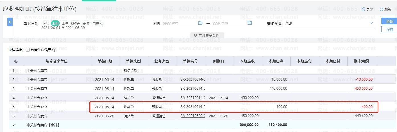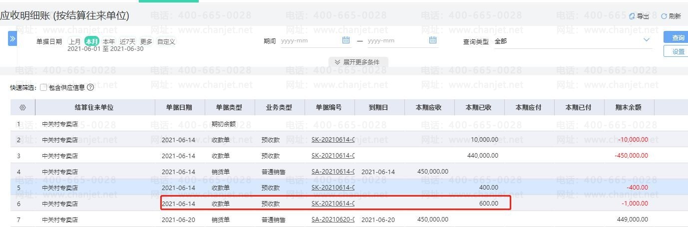 1. 保存生效之后查看应收明细账,会形成相应的已收: