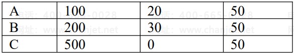 三个存货 A、B、C 的最高最低库存量,以及现存量如下