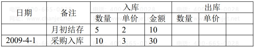 4 月 3 日入库 5 个之后,系统立即计算最新平均单位成本,(12.5+17.5)/(5+5)=3