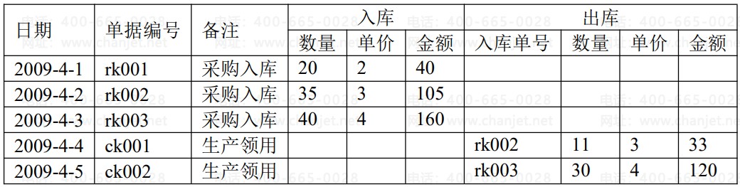 对于存货 A,2009 年 4 月份发生的业务明细如下: