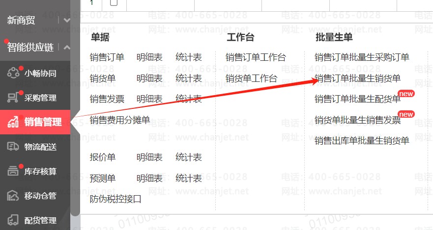 2、在销货单新增页面选单,同时勾选多张销售订单生成销货单。