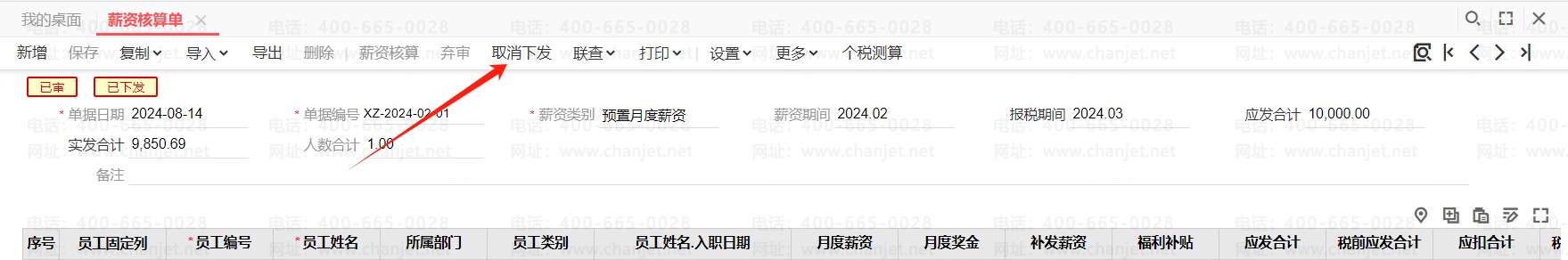 唐山用友畅捷通T+Cloud 薪资核算单下发后能撤回吗?