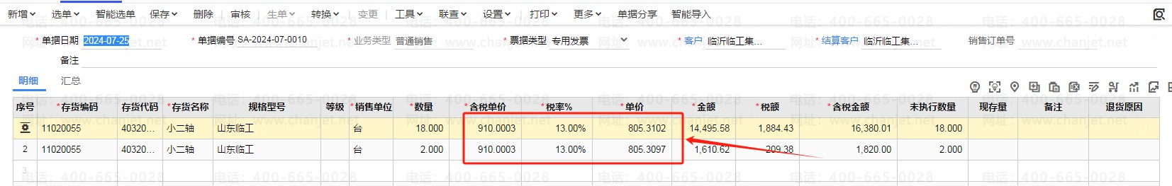 同样910.0003换算成不含税有两个单价,