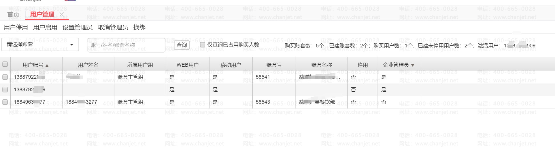 问题详情:两个账套,需要换成188的手机号,但是登录账套或者停用提示超过用户数!