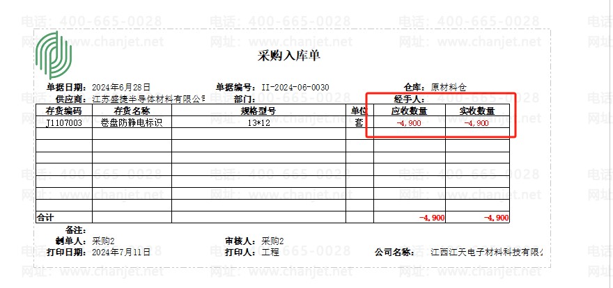 沙河用友畅捷通T+Cloud 打印预览是显示负数,但是打印出来怎么是正数了