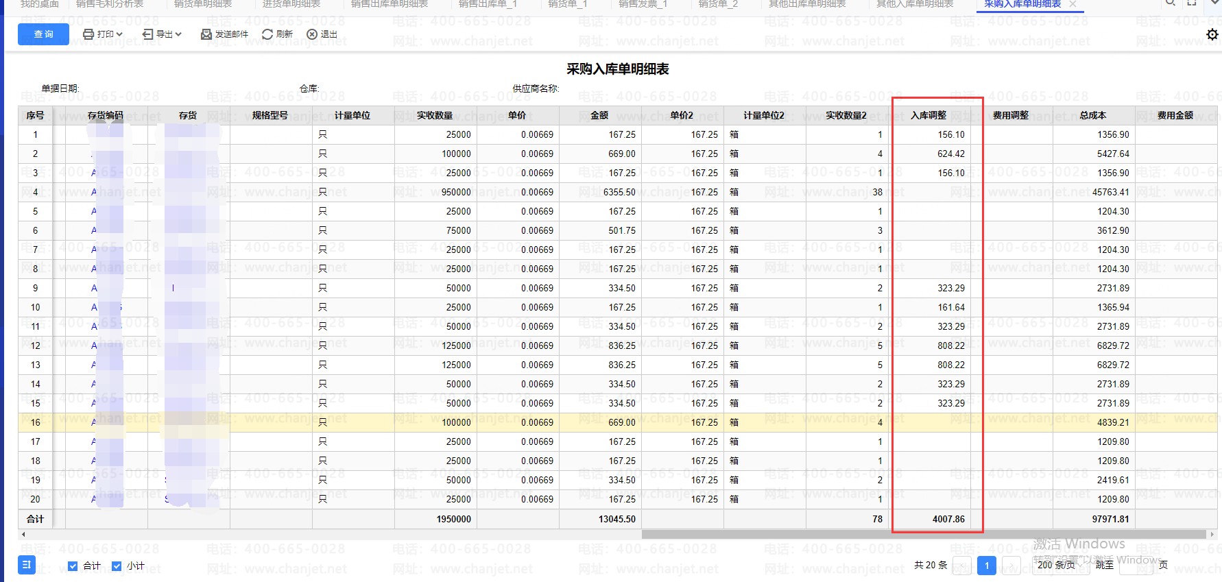 T+Cloud 采购入库单明细表中入库调整的数据是哪里取值?