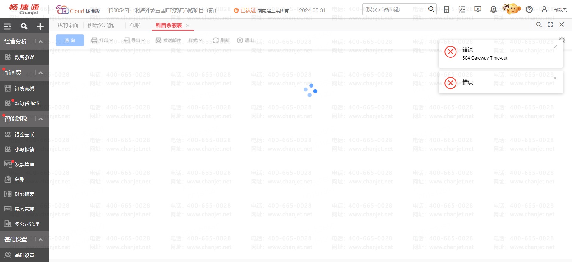 用友畅捷通T+Cloud 余额表打开报错