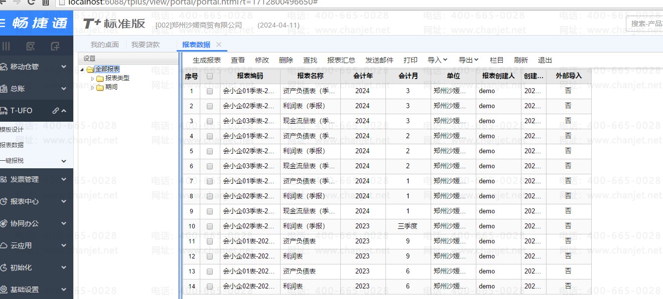 用友T+13.0标准版重新安装如何设置三大报表?点生成报表季报报表,怎么出现这么多?