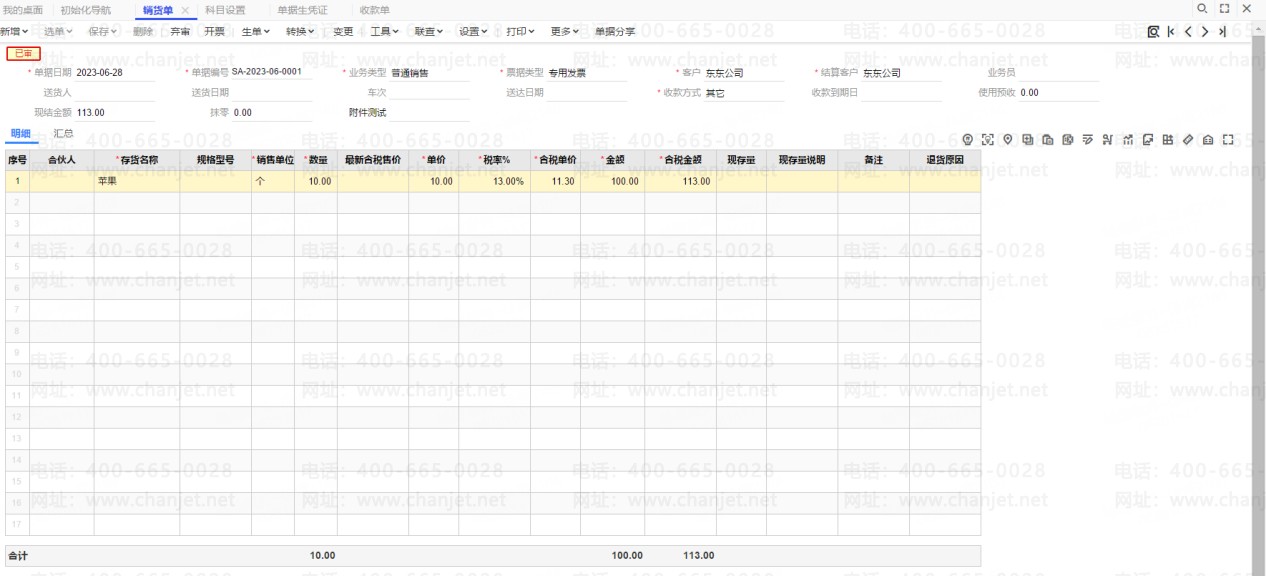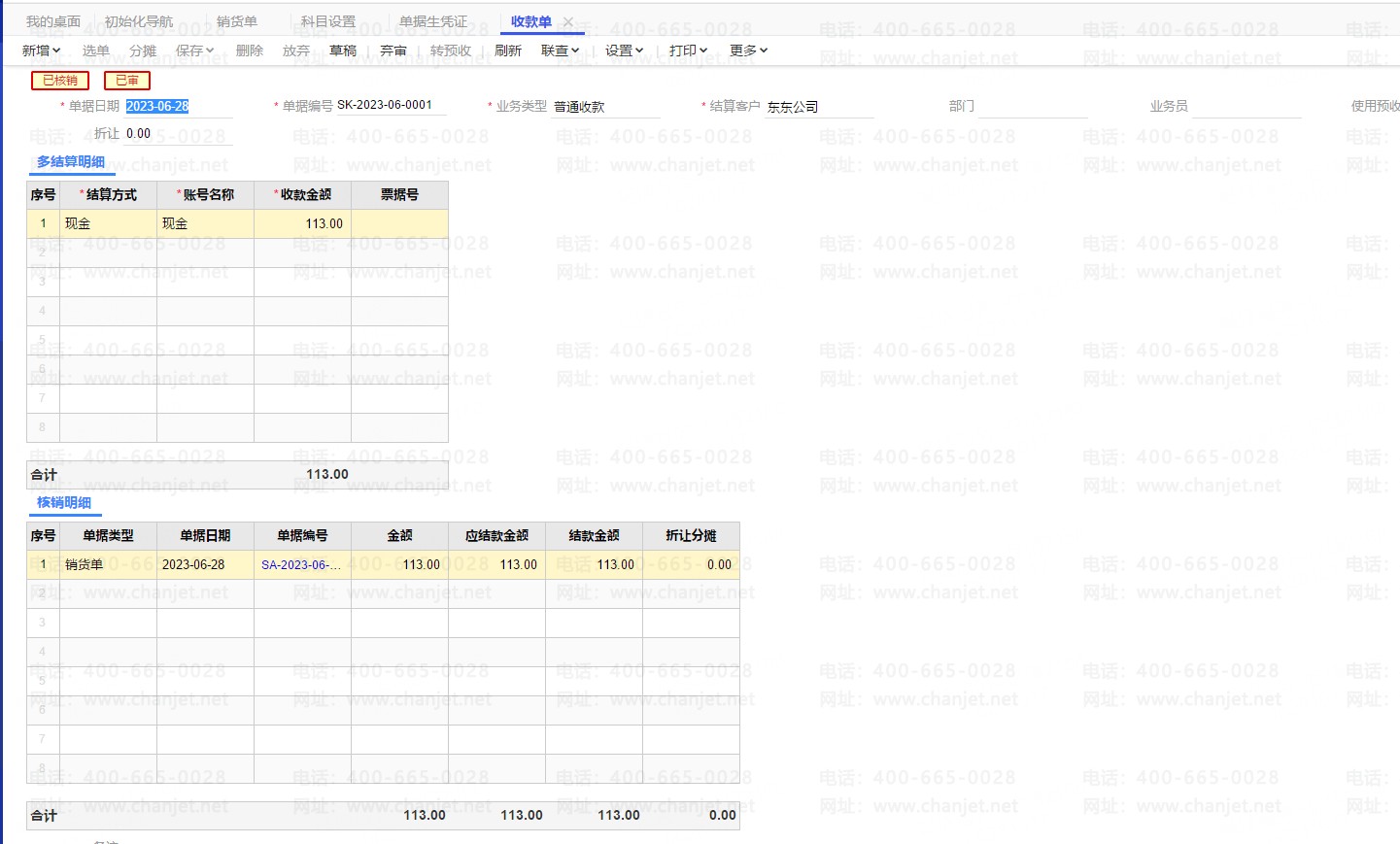 2.将收款单审核之后就是已核销的状态。