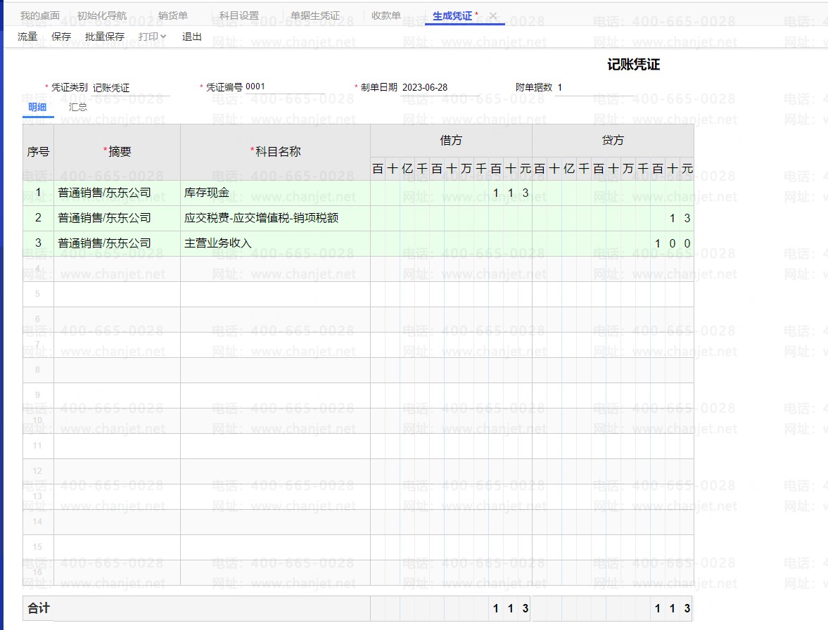 3.此时去生成凭证的时候直接对销货单生成凭证即可,就不用对收款单生成凭证了。(注意:现结的情况也无法对收款单生成凭证。)