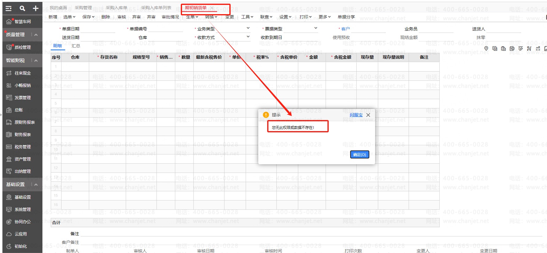 【问题详情】:期初单据无查看权限,已经有过授权,还是点不进去,要怎么处理?