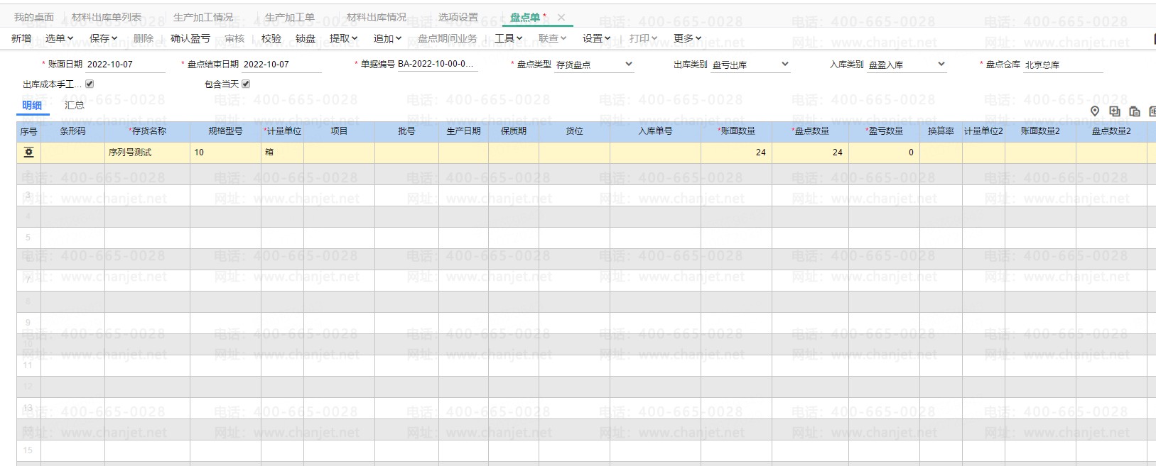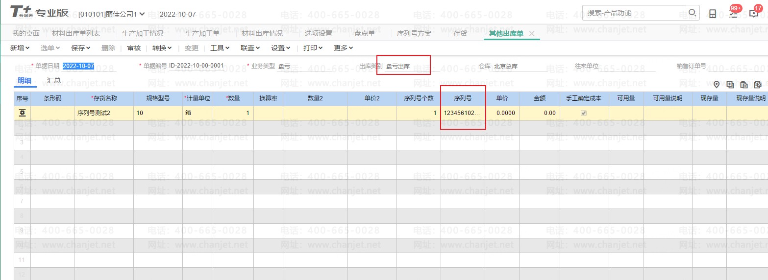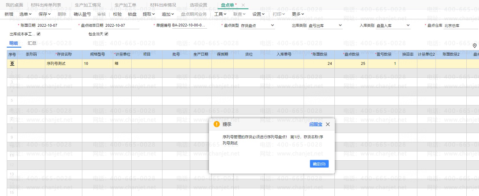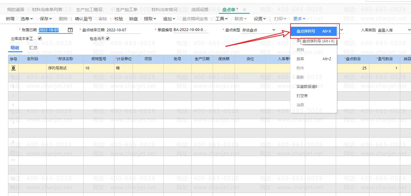 1、盘点单录入序列号存货;