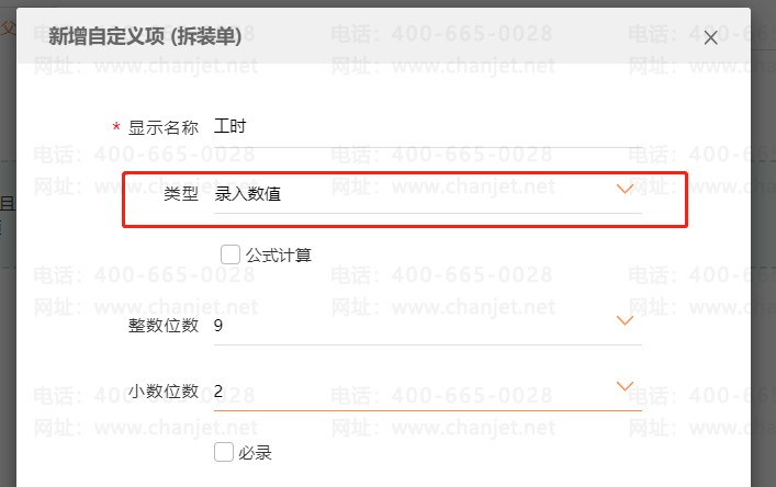 增加自定义项“工时费/小时”,设置为数值类型,2位小数。