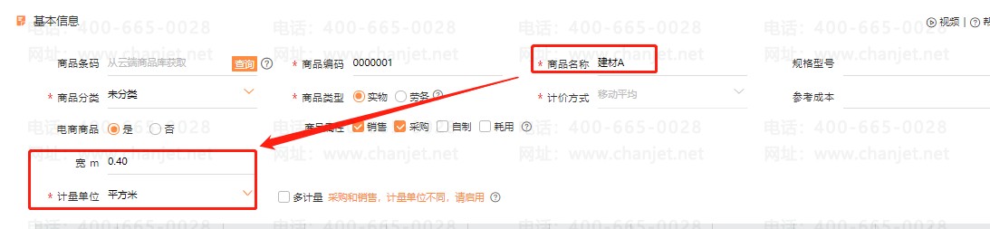 一、【系统管理】-【档案自定义设置】,增加商品自定义项数值“宽”,并标注单位 m