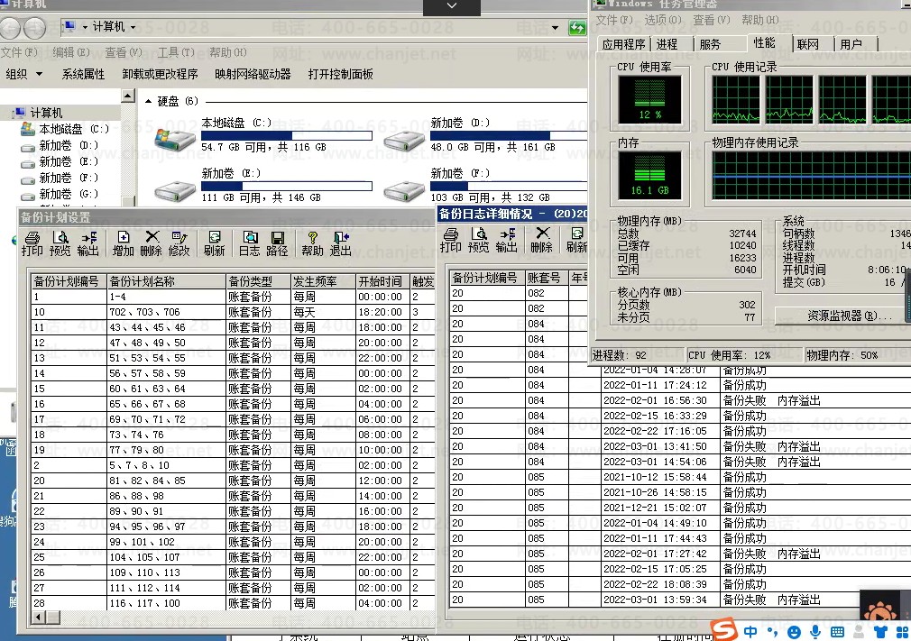 硬盘存储和内存都够用,而且所有备份计划都提示内存溢出。而且有的备份计划,根本就不会自动备份,备份日志都是空的。有的备份计划半个月才备份一次,但是设置的是每周备份一次。
