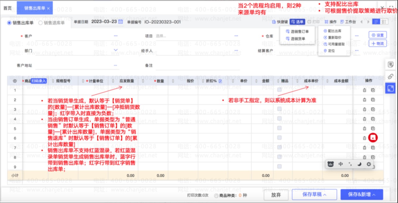对于有订单环节的销售流程,在出库时,需要按对应订单安排出库,以便记录订单执行的情况。