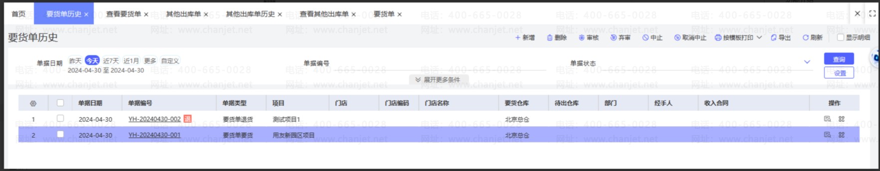 查询已生成的要货单,包含要货、退货两个方向进行汇总查询。