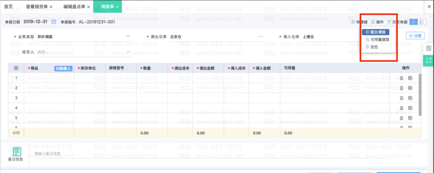 加工制造企业,在生产过程中,需要将原材料按加工需求从材料库调拨到加工厂房,系统支持按产成品的装配清单批量将所需原材料调拨到厂房,即减轻工作量,又保证材料数量的准确性。