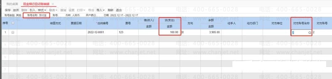 2.填写好一笔支出记录后,将收款的内部账号,在【对方账号名称】处选择好