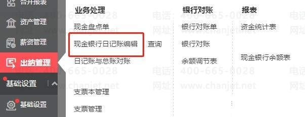 1.打开【出纳管理】-【现金银行日记账编辑】