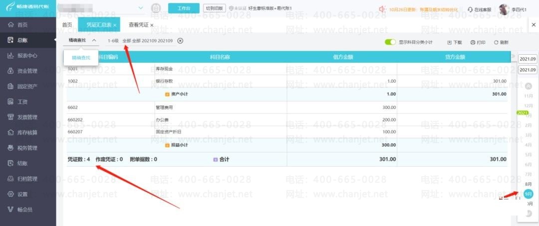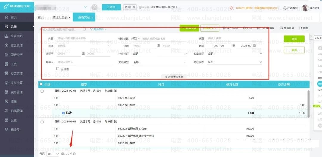 查看凭证页面和凭证汇总表中,设置相同的查询条件,例如科目、期间等信息。