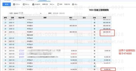 4、明细账余额是每年单独统计的,所以最终余额=最后一年的科目期初+最后一年的借方发生-最后一年的贷方发生,所以160401科目就是24年度的期初余额也就是474000